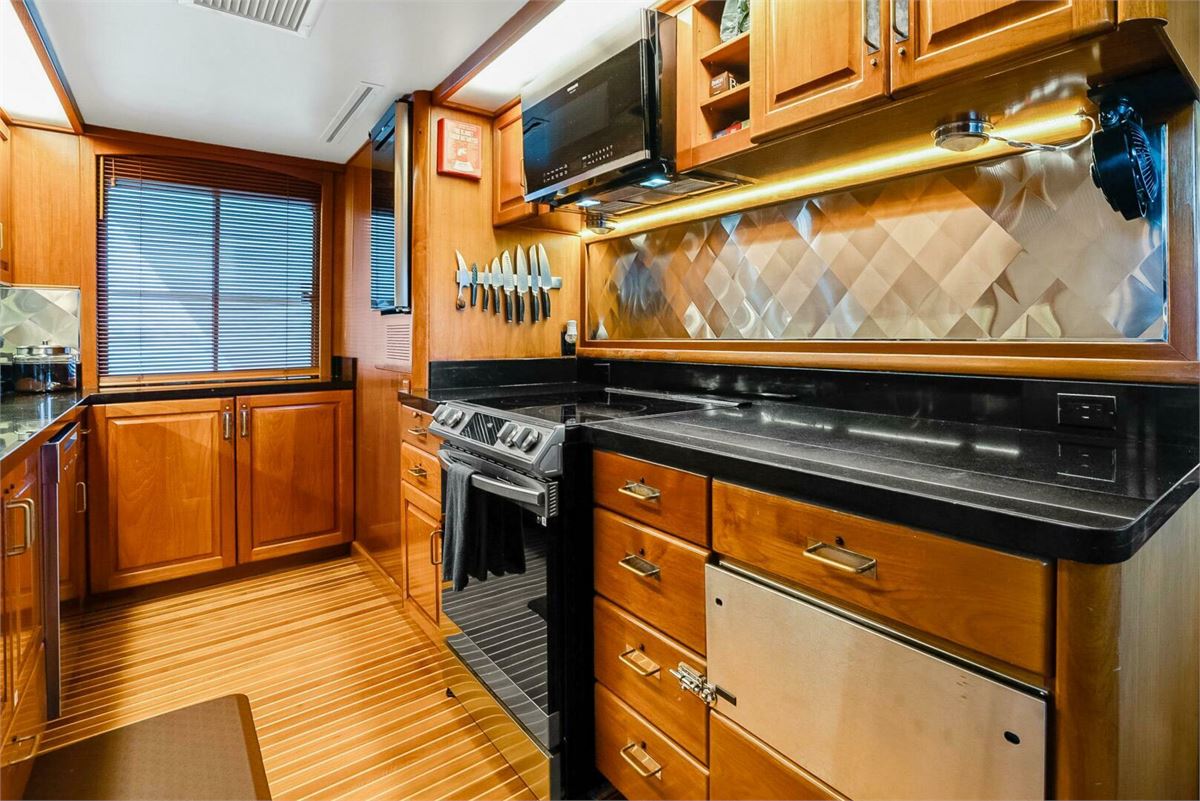 Having undergone a multi-million-dollar refit over the past four years, virtually every area of the yacht has been upgraded. Key features include underway stabilizers, a powerful bow thruster, new teak exterior decks, fresh teak and holly soles throughout the interior, new cushions, a new flybridge enclosure, new generators, and much more.
